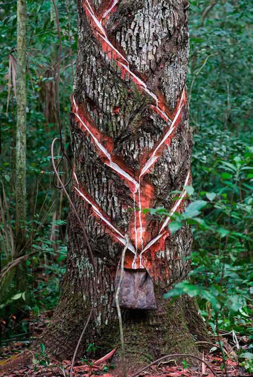 Imagen: @EcoInventos.com Extracción del látex.