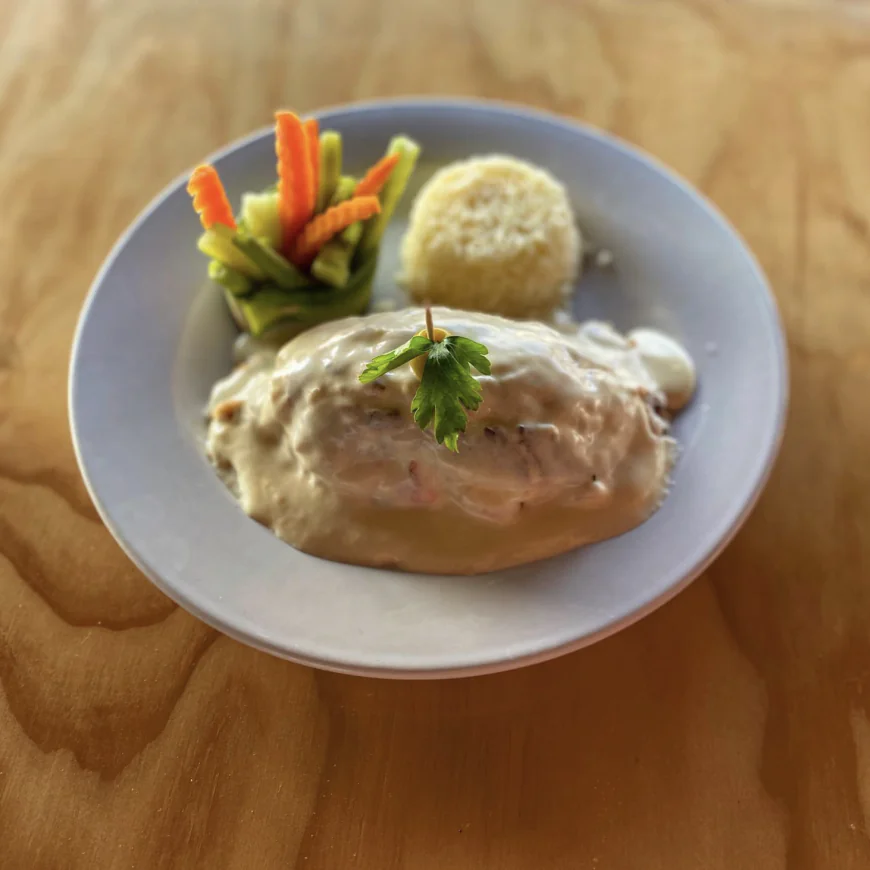Imagen: El Faro del Morro. Filete relleno de mariscos en salsa de queso, Ciudad de Campeche, Campeche