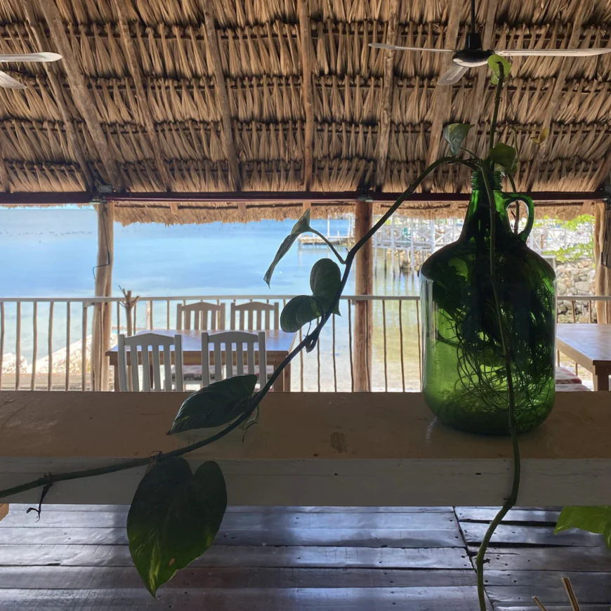 Un restaurante boho chic sobre el mar en Campeche que fusiona mariscos con cocina regional, vistas espectaculares, atardeceres inolvidables y un platillo imperdible: el queso de bola relleno de camarones.