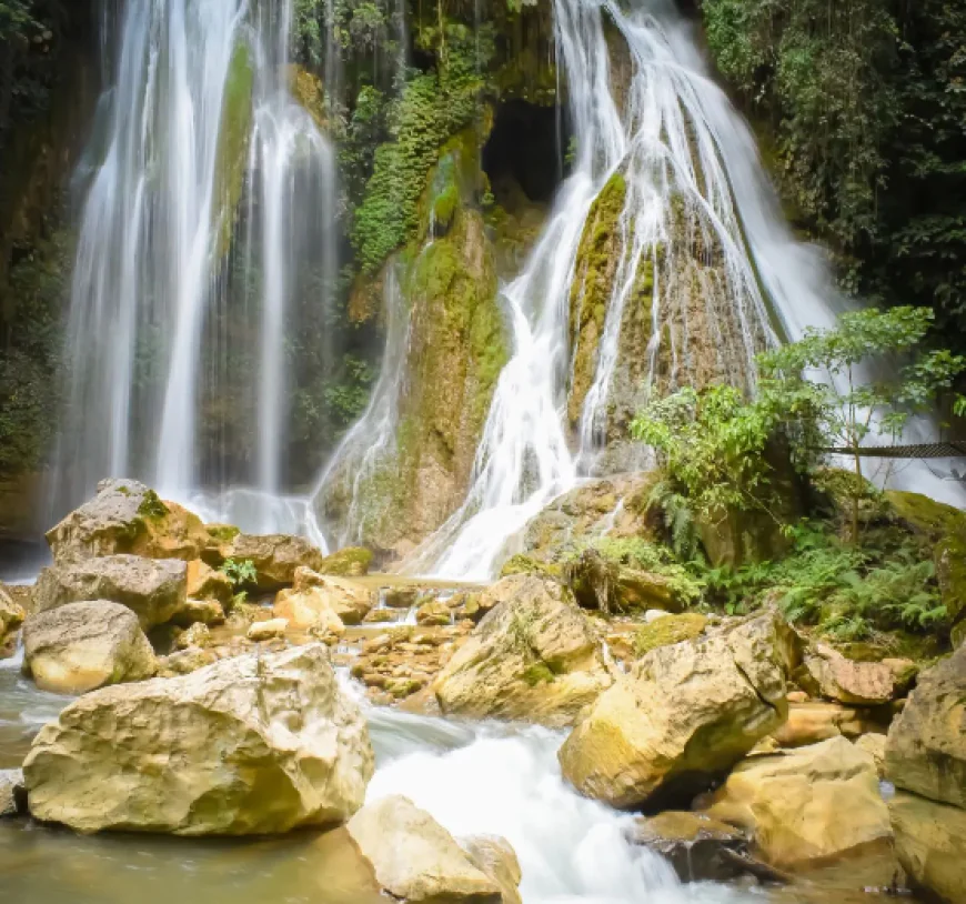 Más adelante, la travesía nos conduce a la Cascada de las Golondrinas, un rincón escondido donde el agua cae con fuerza entre paredes cubiertas de verde. Aquí, como turistas podemos refrescarnos con la brisa de la caída de agua, descansar junto a la poza, observar aves y disfrutar del silencio roto solo por la naturaleza. Para los más aventureros, es posible acercarse con cuidado a la base de la cascada o continuar explorando senderos cercanos.