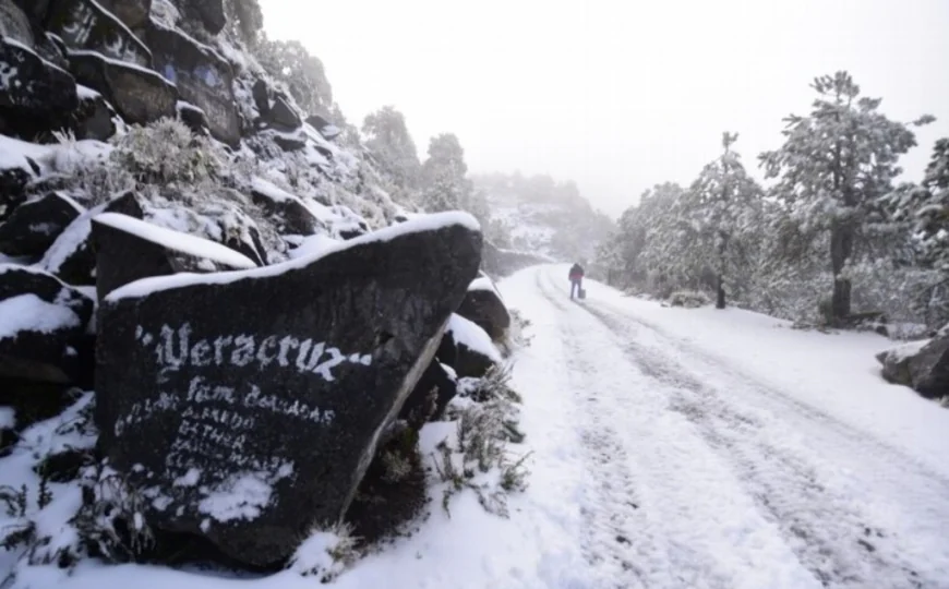 En el corazón del altiplano veracruzano, el Cofre de Perote ofrece cada invierno un espectáculo único: sus bosques de pino y oyamel cubiertos de una delicada capa blanca.