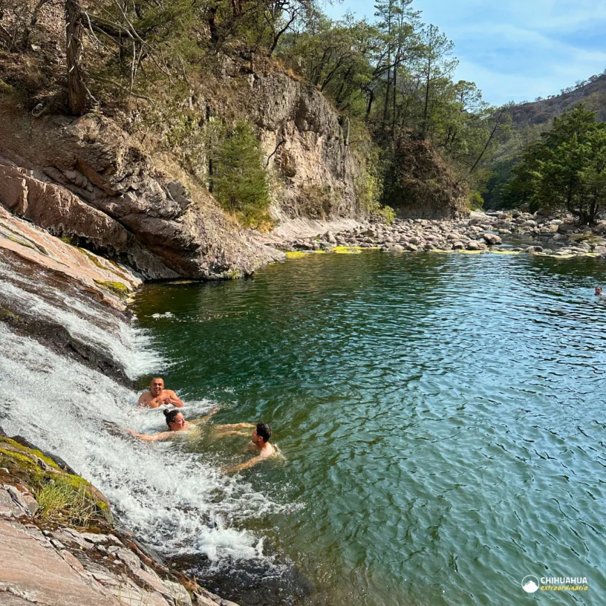Una vez en el fondo del cañón, encontrarás siete albercas naturales con distintas temperaturas y niveles, un sitio ideal para relajarse, incluso cuando el clima fuera del cañón puede ser más frío.