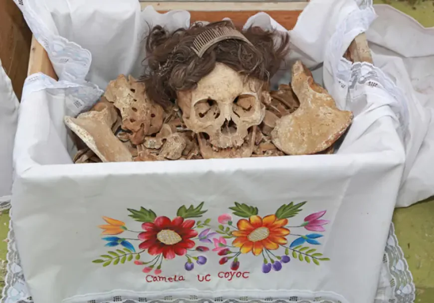 En este pequeño pueblo maya, ubicado en el municipio de Hecelchakán, la relación con la muerte es cercana y respetuosa. Aquí las familias limpian los huesos cada año antes del Día de Muertos.